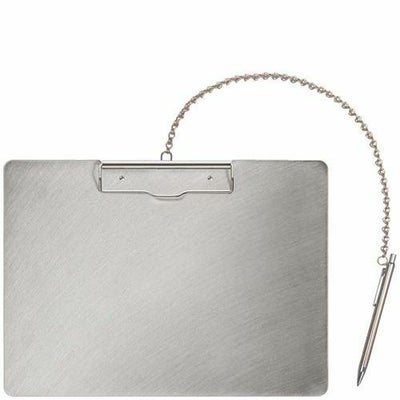 材質:板面:ステンレス(SUS430) クリップ部チェーン:ステンレス(SUS430) ペン:ステンレス(SUS430)