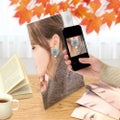 専用フォトスタンド付き!撮影しやすい角度にセッティングできます。フォトスタンドの空いた部分にピアスを通すことができます。A4サイズが置けるスタンドです。