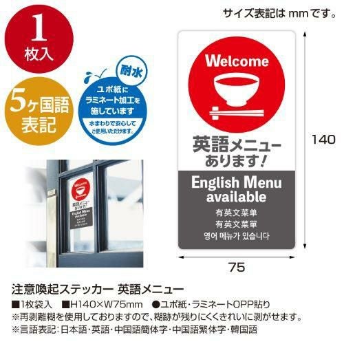 他の画像を見る 注意喚起ステッカー 英語メニュー 10冊入 品番:24-550 /業務用/新品/小物送料対象商品 定価 ¥ 4,400 (税込)のところ 販売価格 ¥ 3,388 税込 完売いたしました 詳細を見る