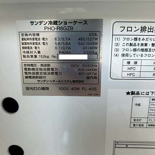 他の画像を見る 直接引取の場合は送料追加なし【新潟店】 【業界最長1年保証】【中古】冷蔵ショーケース サンデン・リテールシステム PHO-R6GZB 幅1800×奥行870×高さ910 【送料別途見積】【業務用】【新潟店在庫】 販売価格 ¥ 193,050 税込