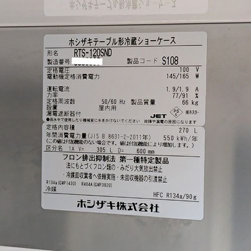 他の画像を見る 直接引取の場合は送料追加なし【新潟店】 【業界最長1年保証】【中古】台下冷蔵ショーケース ホシザキ RTS-120SND 幅1200×奥行600×高さ800 【送料別途見積】【業務用】【新潟店在庫】 販売価格 ¥ 144,980 税込