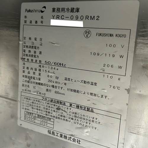他の画像を見る 直接引取の場合は送料追加なし【姫路店】 【業界最長1年保証】【中古】冷蔵コールドテーブル フクシマガリレイ(福島工業) YRC-090RM2 幅600×奥行750×高さ850 【送料別途見積】【業務用】【姫路店在庫】 販売価格 ¥ 69,410 税込