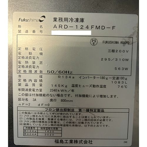 他の画像を見る 直接引取の場合は送料追加なし【堺店】 【業界最長1年保証】【中古】縦型冷凍庫 フクシマガリレイ(福島工業) KRD-124FMD-F 幅1200×奥行800×高さ1950 三相200V 【送料別途見積】【業務用】【堺店在庫】 販売価格 ¥ 237,160 税込 詳細を見る