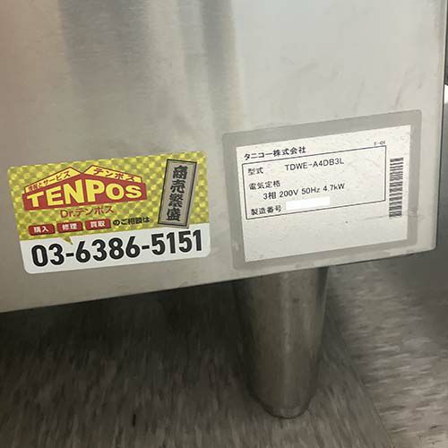 他の画像を見る 直接引取の場合は送料追加なし【野田店】 【業界最長1年保証】【中古】食器洗浄機 リターンタイプ タニコー TDWE-A4DB3L 幅600×奥行600×高さ1390 三相200V 50Hz専用 【送料別途見積】【業務用】【野田店在庫】 販売価格 ¥ 410,080 税込