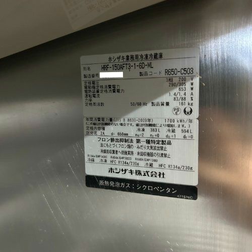 他の画像を見る 直接引取の場合は送料追加なし【千葉店】 【業界最長1年保証】【中古】縦型冷凍冷蔵庫 2凍4蔵 ホシザキ HRF-150AFT3-1-60-ML 幅1500×奥行650×高さ1910 三相200V 【送料別途見積】【業務用】【千葉店在庫】 販売価格 ¥ 385,000 税込 詳細を見る