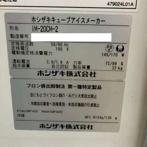 他の画像を見る 直接引取の場合は送料追加なし【野田店】 【業界最長1年保証】【中古】製氷機 20kg キューブタイプ ホシザキ IM-20CM-2 幅450×奥行450×高さ630 【送料別途見積】【業務用】【野田店在庫】 販売価格 ¥ 110,000 税込