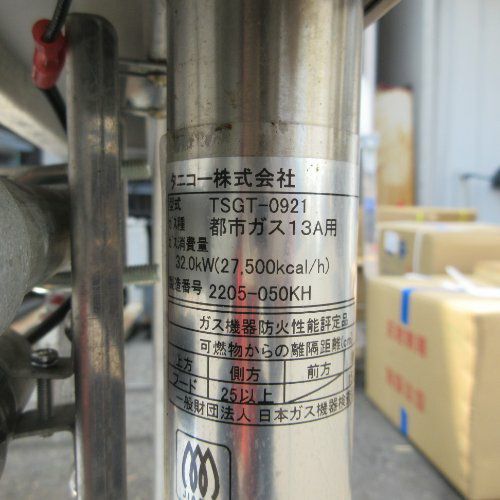 他の画像を見る 直接引取の場合は送料追加なし【川崎店】 【業界最長1年保証】【中古】ガステーブル タニコー TSGT-0921 幅900×奥行600×高さ800 都市ガス 【送料別途見積】【業務用】【川崎店在庫】 販売価格 ¥ 92,620 税込