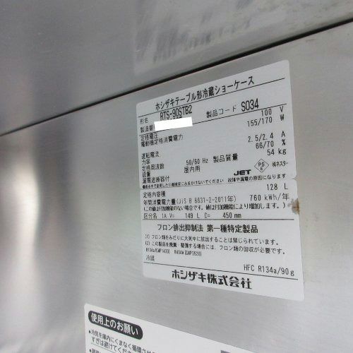 他の画像を見る 直接引取の場合は送料追加なし【川崎店】 【業界最長1年保証】【中古】台下冷蔵ショーケース ホシザキ RTS-90STB2 幅900×奥行600×高さ800 【送料別途見積】【業務用】【川崎店在庫】 販売価格 ¥ 113,740 税込