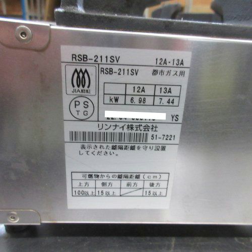 他の画像を見る 直接引取の場合は送料追加なし【川崎店】 【中古】ガス卓上コンロ リンナイ(Rinnai) RSB-211SV 幅542×奥行275×高さ151 都市ガス 【送料別途見積】【業務用】【川崎店在庫】 販売価格 ¥ 21,450 税込