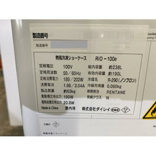 他の画像を見る 直接引取の場合は送料追加なし【川崎店】 【業界最長1年保証】【中古】無風冷凍ショーケース ダイレイ RIO-100SG 幅1000×奥行650×高さ880 【送料別途見積】【業務用】【川崎店在庫】 販売価格 ¥ 126,225 税込