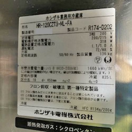 他の画像を見る 直接引取の場合は送料追加なし【川崎店】 【中古】フロントエアー4ドア縦型冷蔵庫 ホシザキ HR-120CZT3-ML-FA 幅1200×奥行650×高さ1940 三相200V 【送料別途見積】【業務用】【川崎店在庫】 販売価格 ¥ 176,715 税込 詳細を見る