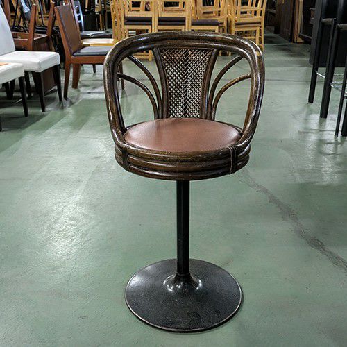 他の画像を見る 【川口イス・テーブル専門館】 【中古】籐イス ブラウン 座黒レザー 幅460×奥行550×高さ840 座面高さ:410 【送料無料】【業務用】【川口イス・テーブル専門館在庫】 販売価格 ¥ 12,650 税込