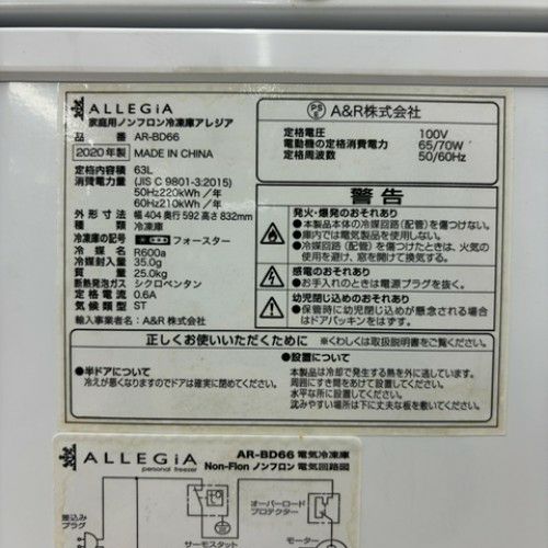 他の画像を見る 直接引取の場合は送料追加なし【川越店】 【中古】冷凍ストッカー 63L ALLEGiA AR-BD66 幅404×奥行592×高さ832 【送料別途見積】【業務用】【川越店在庫】 販売価格 ¥ 19,800 税込