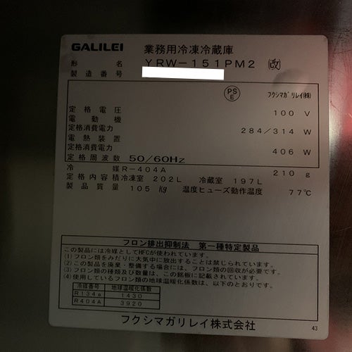 他の画像を見る 直接引取の場合は送料追加なし【東京ラーメン専門館】 【業界最長1年保証】【中古】冷凍冷蔵コールドテーブル フクシマガリレイ(福島工業) YRW-151PM2 幅1500×奥行750×高さ800 【送料別途見積】【業務用】【東京ラーメン専門館在庫】 販売価格 ¥ 154,000 税込