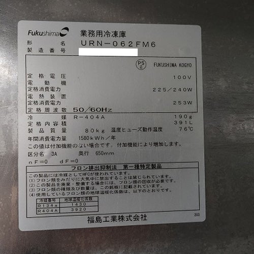他の画像を見る 直接引取の場合は送料追加なし【東京ラーメン専門館】 【業界最長1年保証】【中古】縦型冷凍庫 フクシマガリレイ(福島工業) URN-062FM6 幅610×奥行650×高さ1950 【送料別途見積】【業務用】【東京ラーメン専門館在庫】 販売価格 ¥ 129,800 税込 詳細を見る