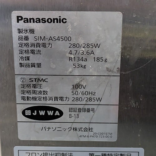 他の画像を見る 直接引取の場合は送料追加なし【東京ラーメン専門館】 【業界最長1年保証】【中古】製氷機 45kgキューブタイプ パナソニック(Panasonic) SIM-AS4500 幅630×奥行450×高さ800 【送料別途見積】【業務用】【東京ラーメン専門館在庫】 販売価格 ¥ 195,800 税込