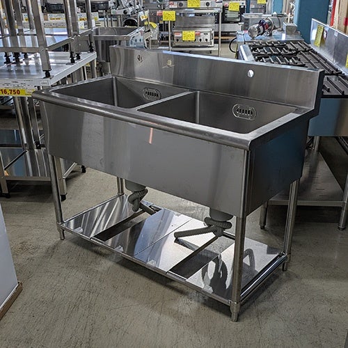 他の画像を見る 直接引取の場合は送料追加なし【東京ラーメン専門館】 【中古】二槽シンク BGあり 幅1200×奥行600×高さ830 【送料別途見積】【業務用】【東京ラーメン専門館在庫】 販売価格 ¥ 39,600 税込