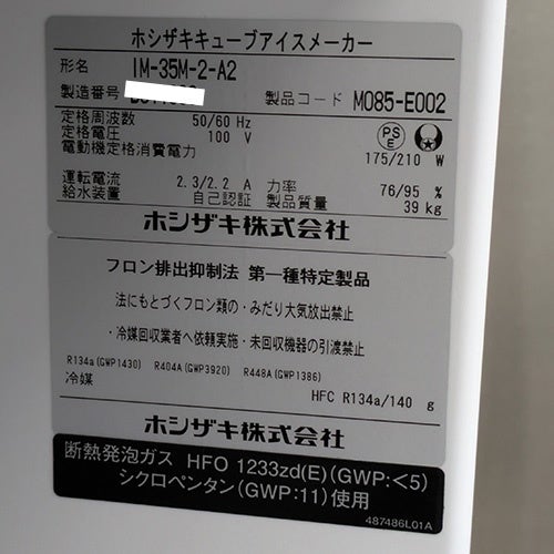 他の画像を見る 直接引取の場合は送料追加なし【東京ラーメン専門館】 【業界最長1年保証】【中古】製氷機 35kg ホシザキ IM-35M-2-A2 幅500×奥行450×高さ800 【送料別途見積】【業務用】【東京ラーメン専門館在庫】 販売価格 ¥ 168,300 税込