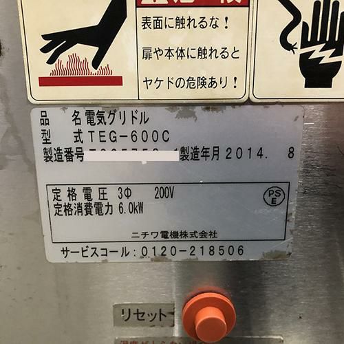 他の画像を見る 直接引取の場合は送料追加なし【新宿店】 【業界最長1年保証】【中古】グリドル ニチワ電機 TEG-600C 幅600×奥行600×高さ300 三相200V 【送料別途見積】【業務用】【新宿店在庫】 販売価格 ¥ 188,100 税込