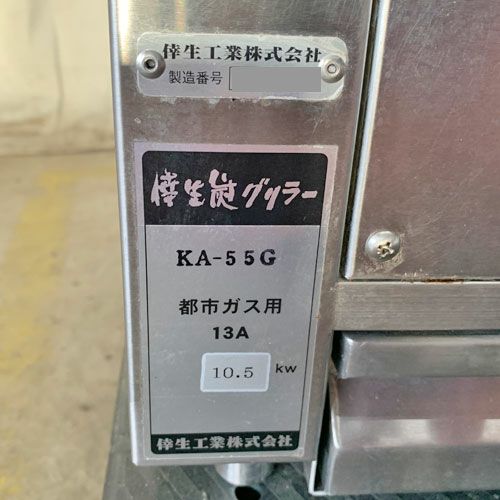 他の画像を見る 直接引取の場合は送料追加なし【福岡店】 【中古】炭グリラー 倖生工業 KA-55G 幅540×奥行610×高さ384 都市ガス 【送料別途見積】【業務用】【福岡店在庫】 販売価格 ¥ 257,400 税込