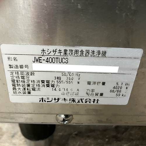他の画像を見る 直接引取の場合は送料追加なし【那覇店】 【業界最長1年保証】【中古】食器洗浄機 アンダーカウンタータイプ ホシザキ JWE-400TUC3 幅600×奥行600×高さ800 三相200V 【送料別途見積】【業務用】【那覇店在庫】 販売価格 ¥ 414,480 税込