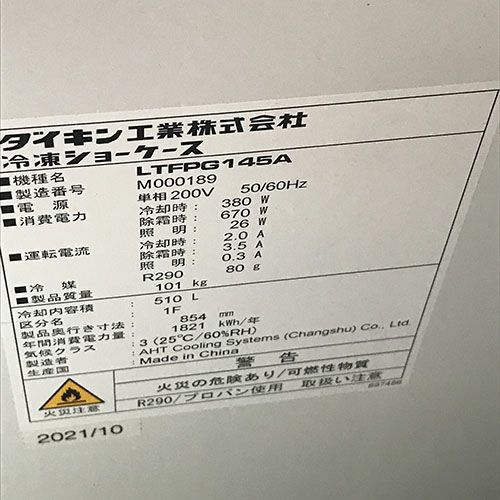 他の画像を見る 直接引取の場合は送料追加なし【松山店】 【業界最長1年保証】【中古】冷凍ショーケース ダイキン LTFPG-145A 幅1457×奥行854×高さ833 【送料別途見積】【業務用】【松山店在庫】 販売価格 ¥ 495,000 税込