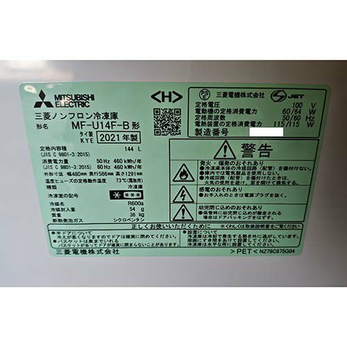 他の画像を見る 直接引取の場合は送料追加なし【仙台店】 【中古】冷凍ストッカー 三菱電機 MF-U14F 幅480×奥行586×高さ1291 【送料別途見積】【業務用】【仙台店在庫】 販売価格 ¥ 34,870 税込