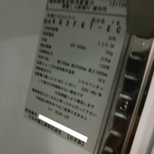 他の画像を見る 直接引取の場合は送料追加なし【仙台店】 【業界最長1年保証】【中古】冷凍リーチインショーケース 大和冷機 403FGT-EC 幅1200×奥行650×高さ1950 三相200V 【送料別途見積】【業務用】【仙台店在庫】 販売価格 ¥ 297,000 税込