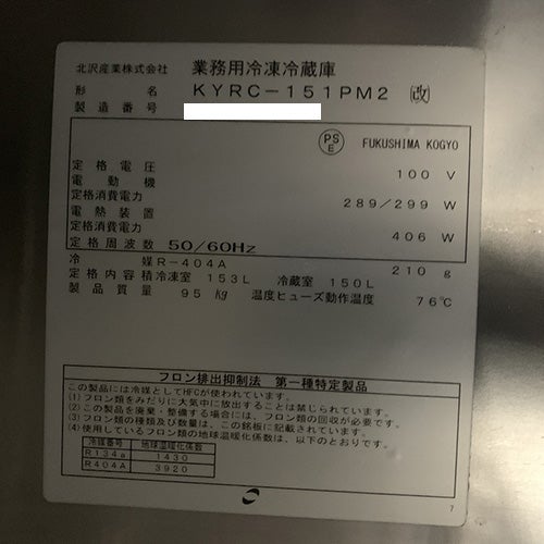 他の画像を見る 直接引取の場合は送料追加なし【名古屋千種店】 【業界最長1年保証】【中古】冷凍冷蔵コールドテーブル フクシマガリレイ(福島工業) KYRC-151PM2(改) 幅1500×奥行600×高さ800 【送料別途見積】【業務用】【名古屋千種店在庫】 販売価格 ¥ 162,030 税込