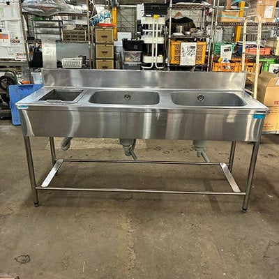 中古二槽シンク ゴミカゴ付き,中古2槽シンク,中古二層シンク,中古2層シンク