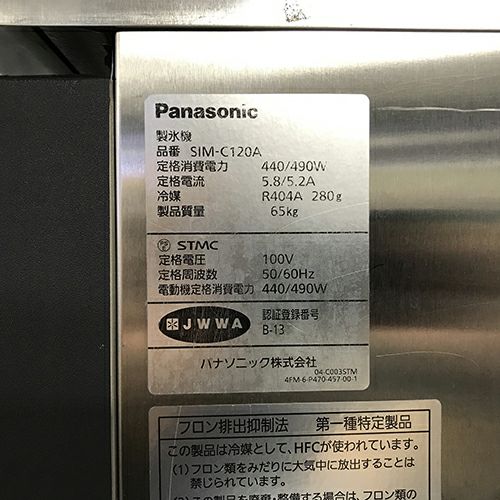 他の画像を見る 直接引取の場合は送料追加なし【岐阜店】 【業界最長1年保証】【中古】製氷機 120kg チップタイプ パナソニック(Panasonic) SIM-C120A 幅600×奥行600×高さ800 【送料別途見積】【業務用】【岐阜店在庫】 販売価格 ¥ 226,001 税込