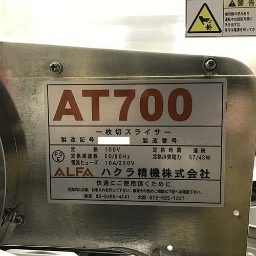 他の画像を見る 直接引取の場合は送料追加なし【岐阜店】 【業界最長1年保証】【中古】パンスライサー ハクラ精機 AT-700 幅800×奥行580×高さ320 【送料別途見積】【業務用】【岐阜店在庫】 販売価格 ¥ 94,050 税込