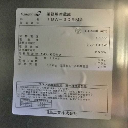 他の画像を見る 直接引取の場合は送料追加なし【岐阜店】 【業界最長1年保証】【中古】低冷蔵ドロワーコールドテーブル フクシマガリレイ(福島工業) TBW-30RM2 幅900×奥行750×高さ650 【送料別途見積】【業務用】【岐阜店在庫】 販売価格 ¥ 129,030 税込