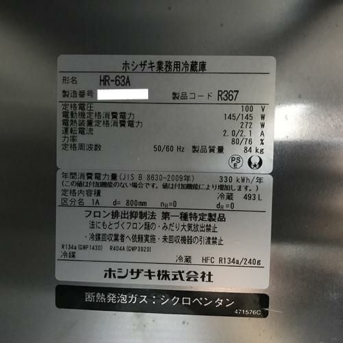 他の画像を見る 直接引取の場合は送料追加なし【岐阜店】 【業界最長1年保証】【中古】縦型冷蔵庫 ホシザキ HR-63A 幅625×奥行800×高さ1890 【送料別途見積】【業務用】【岐阜店在庫】 販売価格 ¥ 185,350 税込 詳細を見る