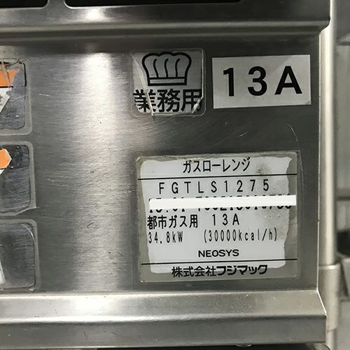 他の画像を見る 直接引取の場合は送料追加なし【岐阜店】 【業界最長1年保証】【中古】ガスローレンジ フジマック FGTLS1275 幅1200×奥行750×高さ450 都市ガス 【送料別途見積】【業務用】【岐阜店在庫】 販売価格 ¥ 88,825 税込