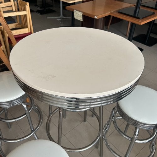 他の画像を見る 直接引取の場合は送料追加なし【鈴鹿店】 【中古】アメリカンダイナーテーブルセット WH 幅750×奥行750×高さ1040 座面高さ:700 【送料別途見積】【業務用】【鈴鹿店在庫】 販売価格 ¥ 30,800 税込