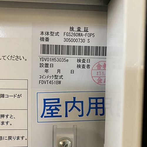 他の画像を見る 直接引取の場合は送料追加なし【堺店】 【業界最長1年保証】【中古】食器汎用自動販売機 屋内専用機 富士電機 FGS260WA-FOP5 幅1166×奥行852×高さ1830 【送料別途見積】【業務用】【堺店在庫】 販売価格 ¥ 495,000 税込