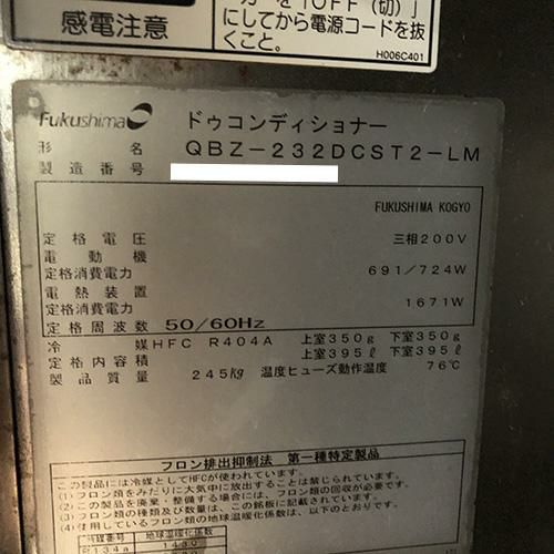 他の画像を見る 直接引取の場合は送料追加なし【製菓製パン堺センター】 【業界最長1年保証】【中古】ドゥコンデショナー フクシマガリレイ(福島工業) QBX-232DCST2-LM 幅770×奥行1250×高さ1920 三相200V 【送料別途見積】【業務用】【製菓製パン堺センター在庫】 販売価格 ¥ 770,000 税込