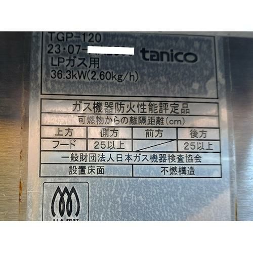 他の画像を見る 直接引取の場合は送料追加なし【東京ラーメン専門館】 【業界最長1年保証】【中古】ローレンジ タニコー TGP-120 幅1200×奥行600×高さ450 LPG(プロパンガス) 【送料別途見積】【業務用】【東京ラーメン専門館在庫】 販売価格 ¥ 84,700 税込