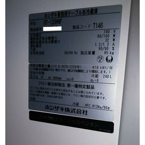 他の画像を見る 直接引取の場合は送料追加なし【米子店】 【業界最長1年保証】【中古】冷蔵コールドテーブル ホシザキ RT-120MNF 幅1200×奥行600×高さ800 【送料別途見積】【業務用】【米子店在庫】 販売価格 ¥ 148,830 税込