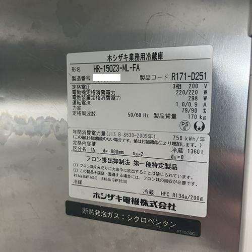 他の画像を見る 直接引取の場合は送料追加なし【製菓製パン堺センター】 【業界最長1年保証】【中古】縦型冷蔵庫 ホシザキ HR-150Z3-ML-FA 幅1500×奥行800×高さ1890 三相200V 【送料別途見積】【業務用】【製菓製パン堺センター在庫】 販売価格 ¥ 184,800 税込 詳細を見る
