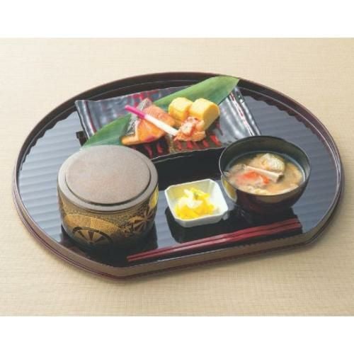 お盆 乱筋日月彫敷膳日輪裏黒乾漆塗 /業務用/新品/送料無料