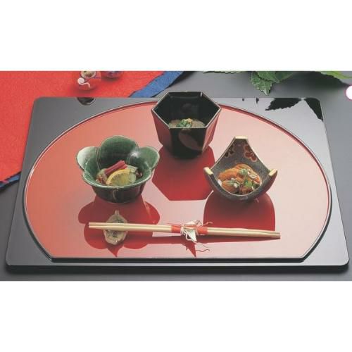 他の画像を見る 【10セット】半月盆 布目日の出盆黒布目天朱尺0寸 NS加工 幅302 奥行270 高さ13 /業務用/新品/小物送料対象商品 定価 ¥ 25,850 (税込)のところ 販売価格 ¥ 12,925 税込 詳細を見る