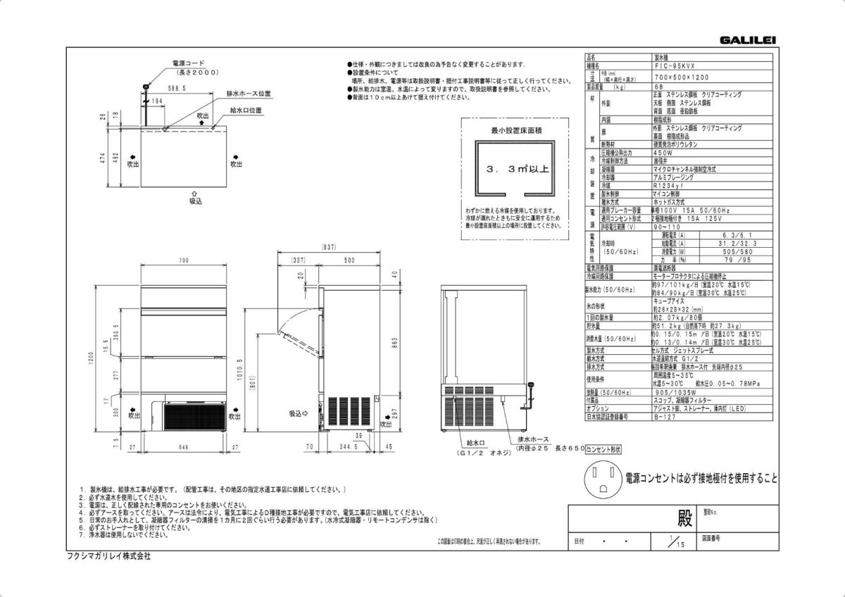 他の画像を見る 【保守メンテナンスサービス付セット商品】FIC-95KVX【フクシマガリレイ】 製氷機 95kgタイプ バーチカルタイプ 幅700×奥行500×高さ1200【業務用/新品】【送料無料】 定価 ¥ 0 (税込)のところ 販売価格 ¥ 405,491 税込 詳細を見る