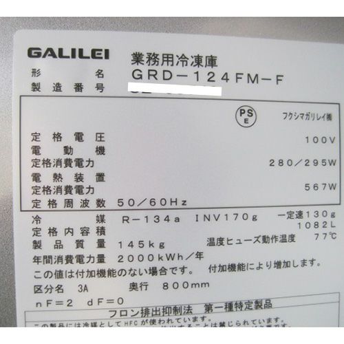 他の画像を見る 委託先様からの配送です。 【中古】冷凍庫 フクシマガリレイ(福島工業) GRD-124FM-F 幅1200×奥行800×高さ1950 【送料別途見積】【未使用品】【業務用】【委託販売-yck】 販売価格 ¥ 253,000 税込