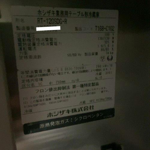 他の画像を見る 直接引取の場合は送料追加なし【米子店】 【業界最長1年保証】【中古】冷蔵コールドテーブル ホシザキ RT-120SNG2020 幅1200×奥行600×高さ800 【送料別途見積】【業務用】【米子店在庫】 販売価格 ¥ 138,930 税込