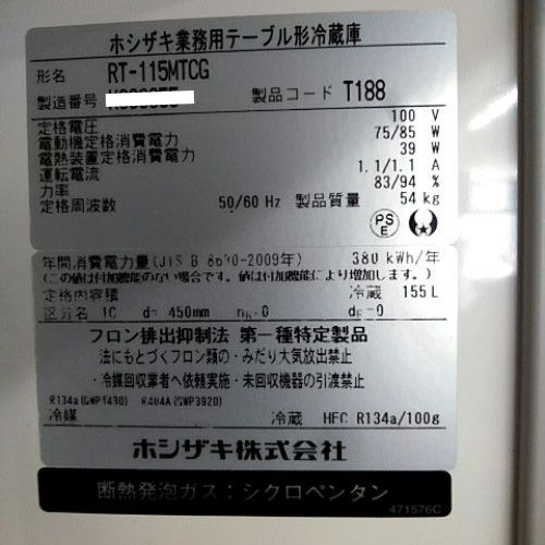 他の画像を見る 直接引取の場合は送料追加なし【新宿店】 【業界最長1年保証】【中古】冷蔵コールドテーブル ホシザキ RT-115MTF 幅1150×奥行450×高さ800 【送料別途見積】【業務用】【新宿店在庫】 販売価格 ¥ 82,500 税込