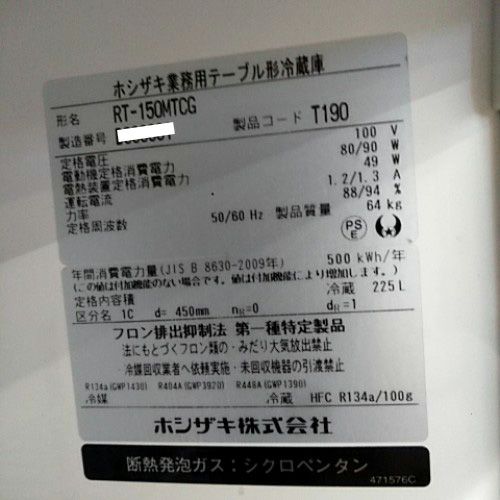 他の画像を見る 直接引取の場合は送料追加なし【米子店】 【業界最長1年保証】【中古】冷蔵コールドテーブル ホシザキ RT-150MTCG 幅1500×奥行450×高さ800 【送料別途見積】【業務用】【米子店在庫】 販売価格 ¥ 149,380 税込