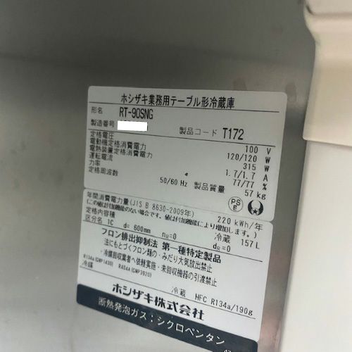 他の画像を見る 直接引取の場合は送料追加なし【新宿店】 【業界最長1年保証】【中古】冷蔵コールドテーブル ホシザキ RT-90SNG 幅900×奥行600×高さ800 【送料別途見積】【業務用】【新宿店在庫】 販売価格 ¥ 119,900 税込