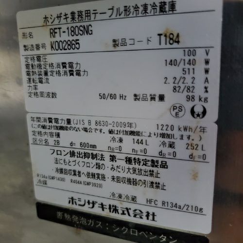 他の画像を見る 直接引取の場合は送料追加なし【姫路店】 【業界最長1年保証】【中古】冷凍冷蔵コールドテーブル ホシザキ RFT-180SNG 幅1800×奥行600×高さ800 【送料別途見積】【業務用】【姫路店在庫】 販売価格 ¥ 215,710 税込